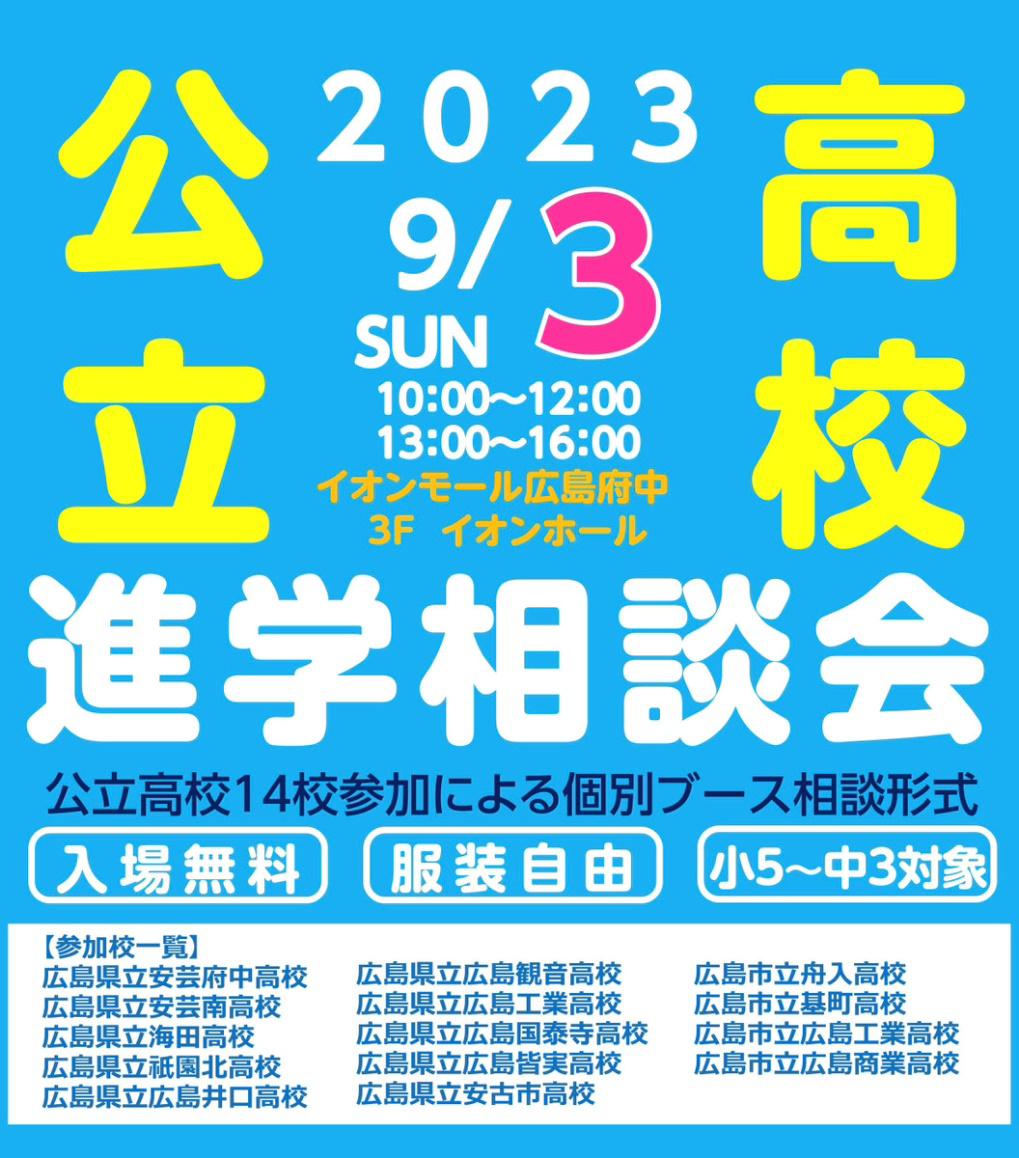 9月3日(日)、イオンモール広島府中3階のイオンホールで行います。